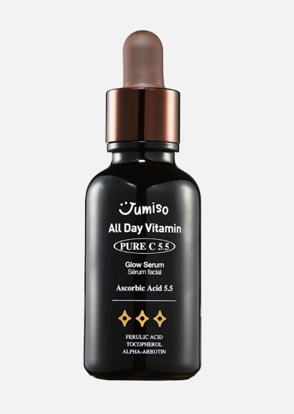 The Jumiso All Day Vitamin Pure C 5.5 Glow Serum is a brightening serum designed to illuminate your complexion and reveal a radiant glow that lasts all day long. It also works to fade hyperpigmentation and revitalizes dull skin.
