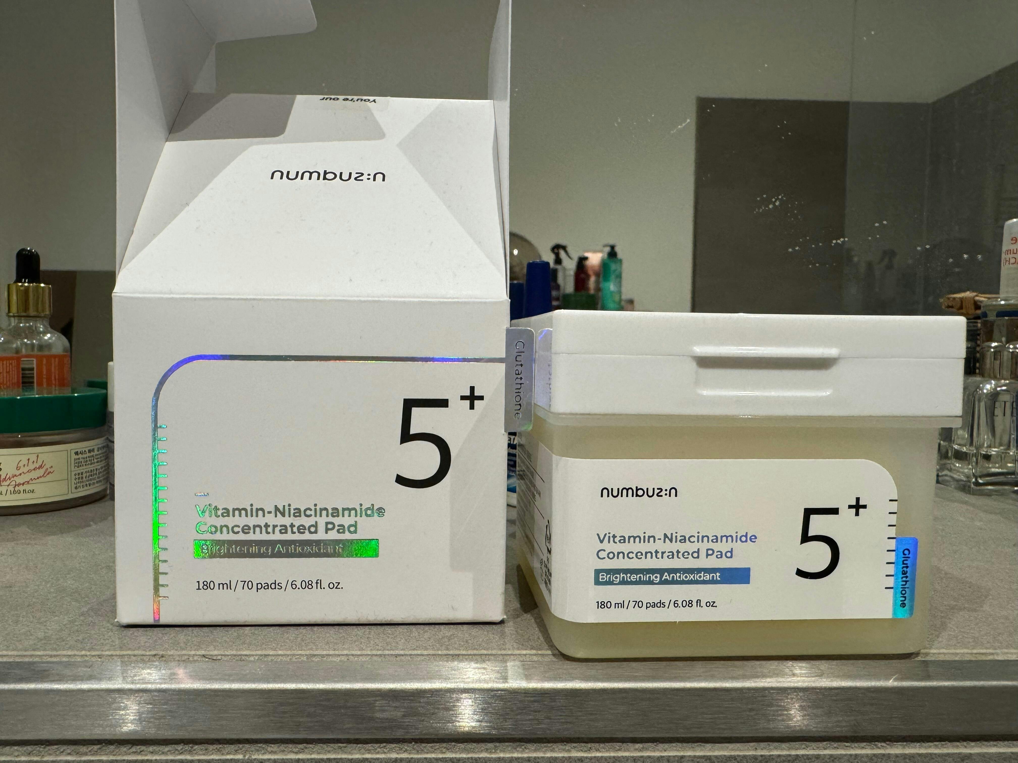 The Numbuzin No.5 Vitamin Niacinamide Pads are such an easy way to brighten my skin. Each pad is soaked in plenty of essence, and the texture gently smooths without feeling rough. After a week of using them, my skin tone looked more even and some of my dark marks started to fade. They leave a fresh, hydrated finish with zero stickiness. Super convenient for mornings when I want a quick glow boost.